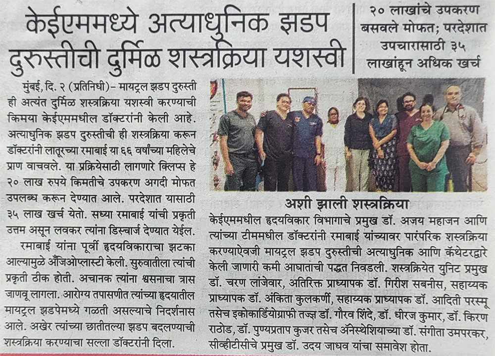 In mumbai a rare heart Surgery on an Old Lady at KEM Hospital Mumbai
